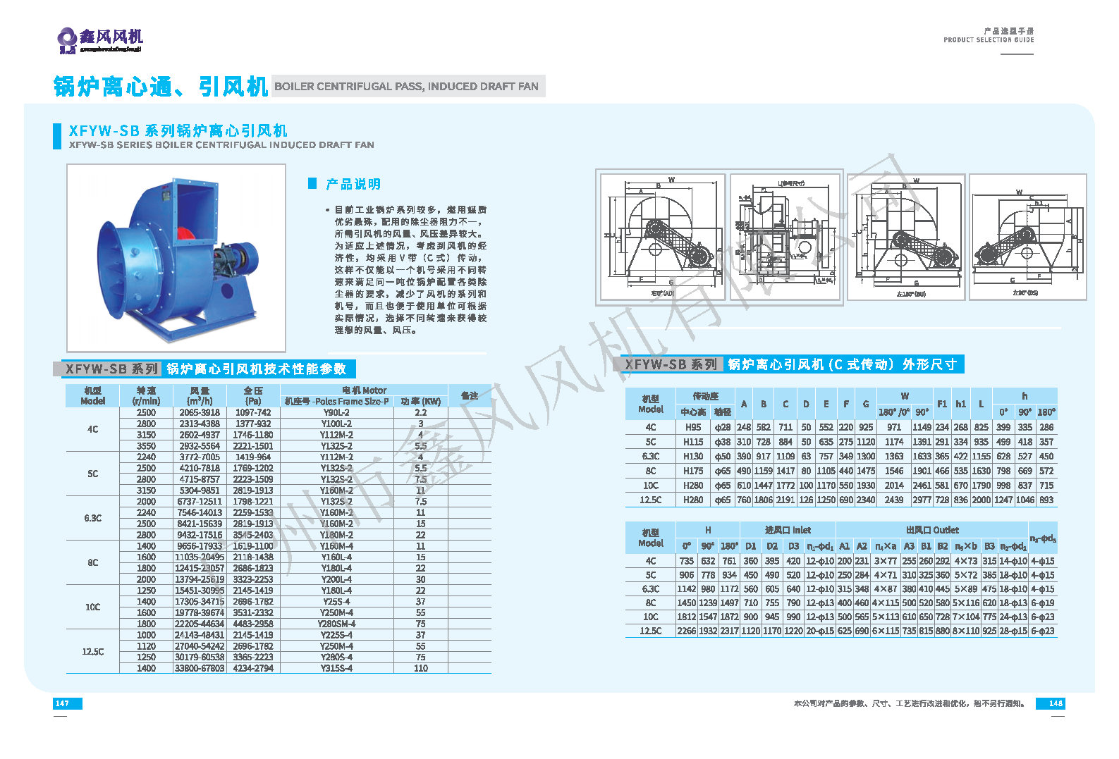 XFYW-SB鍋爐離心引風(fēng)機(jī)系列尺寸外觀參數(shù):