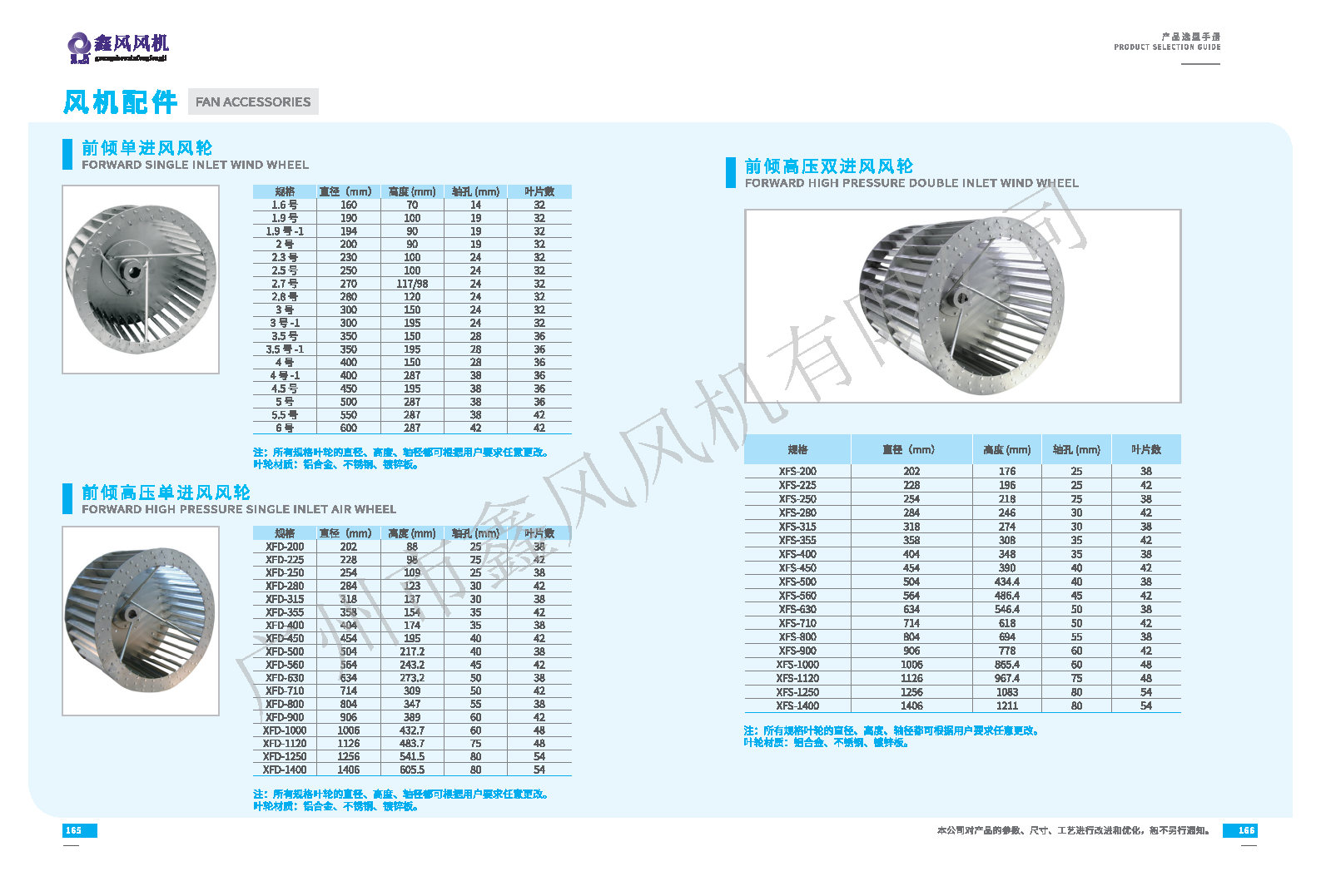所有規(guī)格葉輪的直徑、高度、軸徑都可以根據(jù)用戶要求任意更改。
